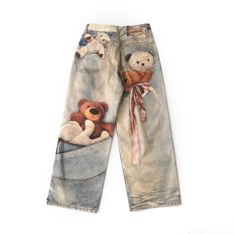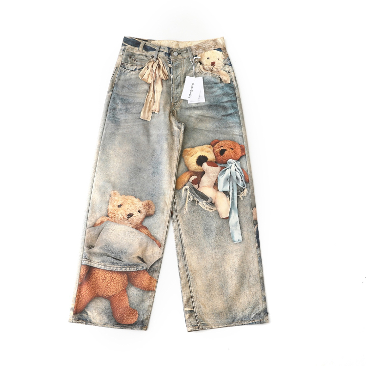 Acne Studios 1981 Teddy Bear 3D Print Wide-Leg Jeans-5928