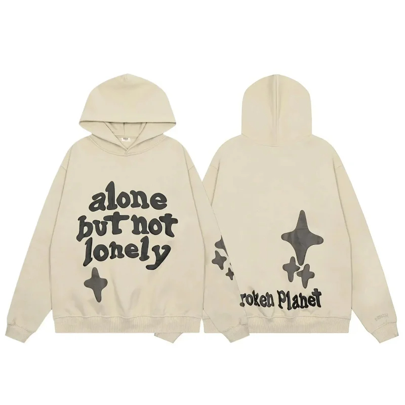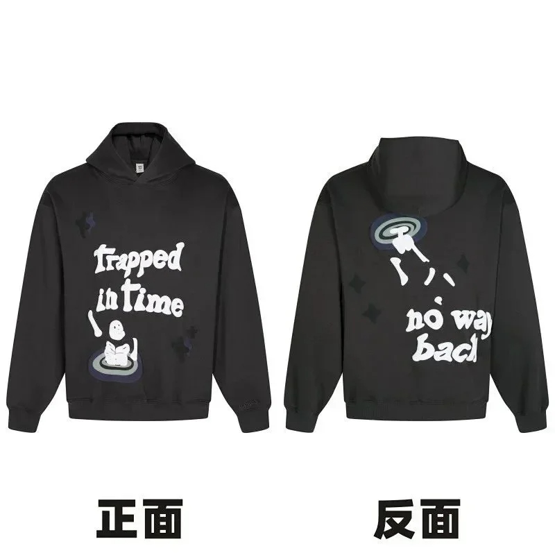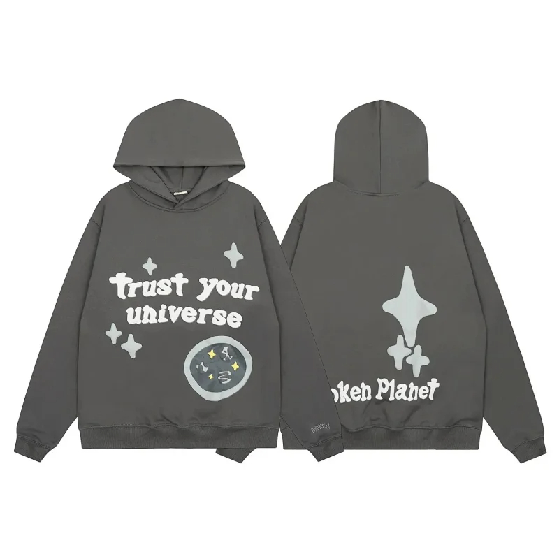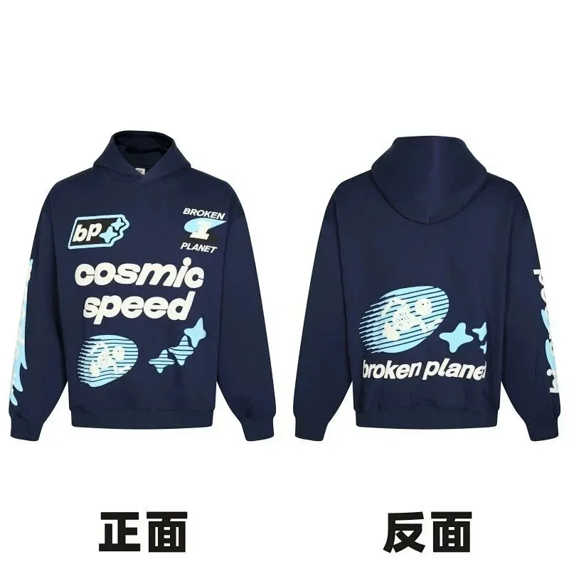 Broken Planet American style retro foam printing hooded sweatshirt-2506