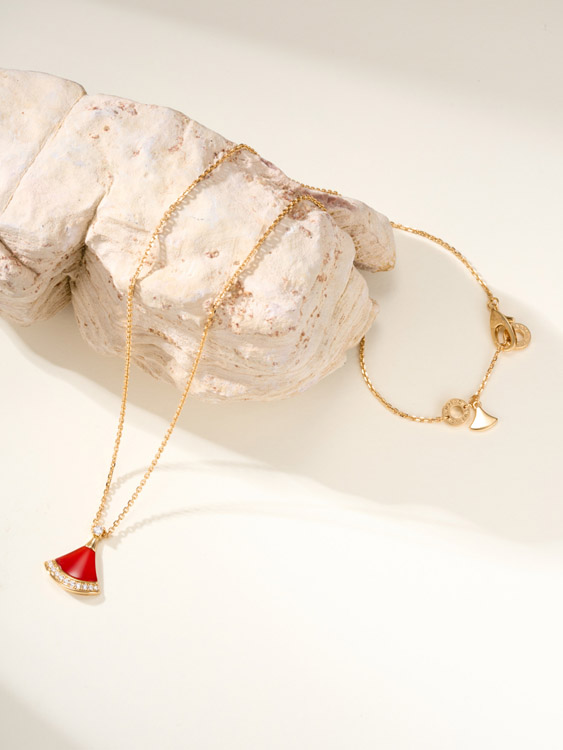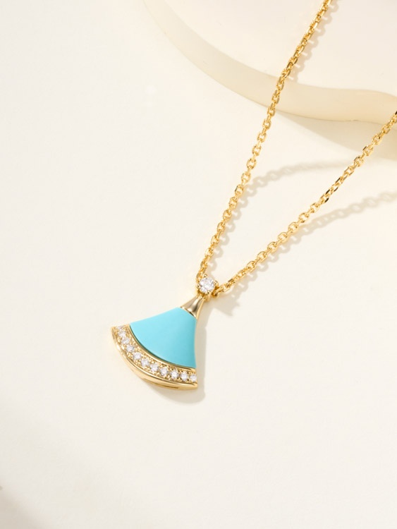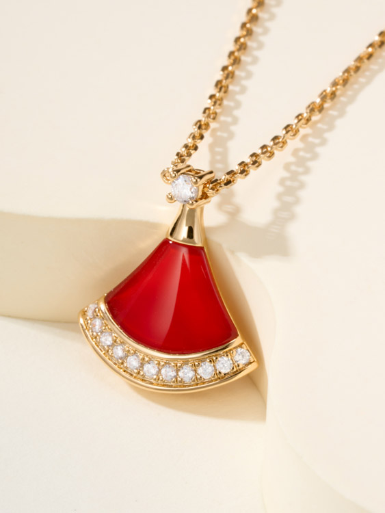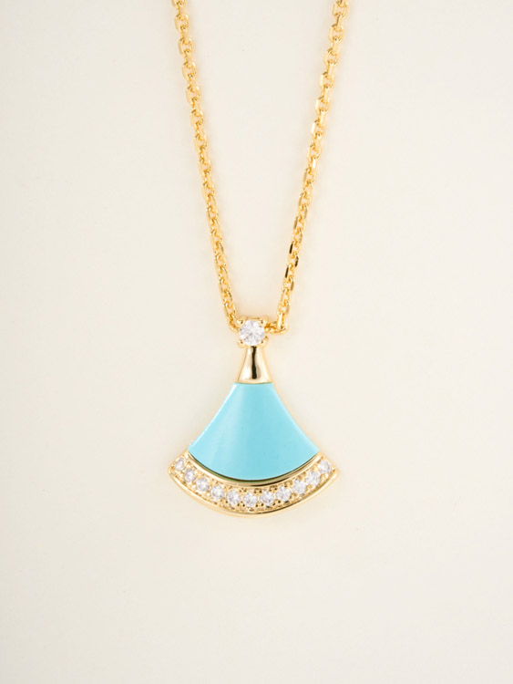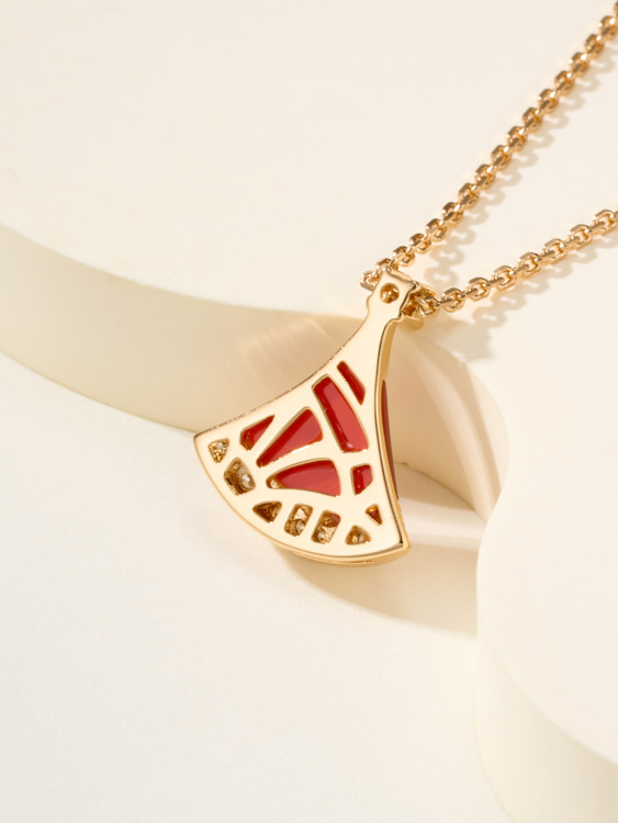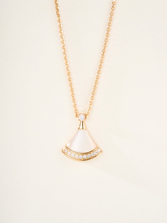 Bulgari fan white mother-of-pearl diamond rose gold carnelian blue green pendant necklace-3767