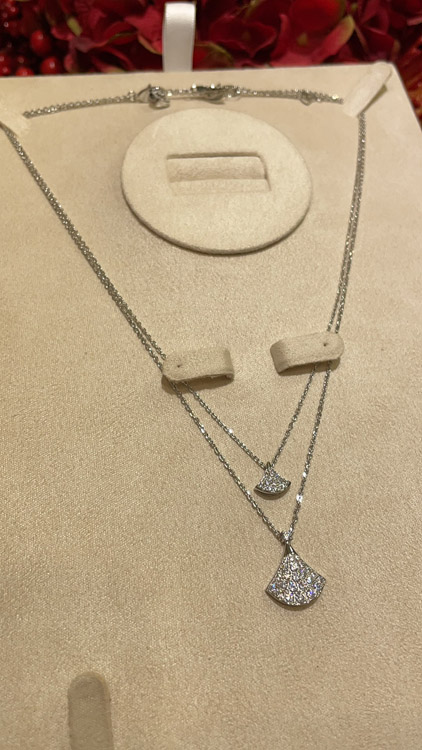 Bulgari small fan full diamond white gold necklace-3896