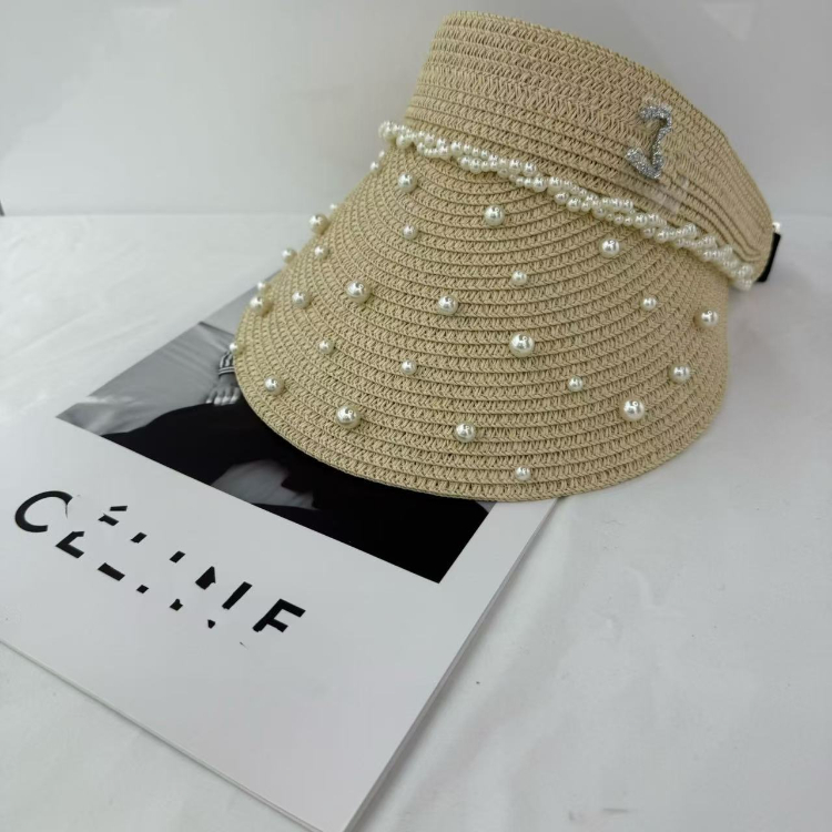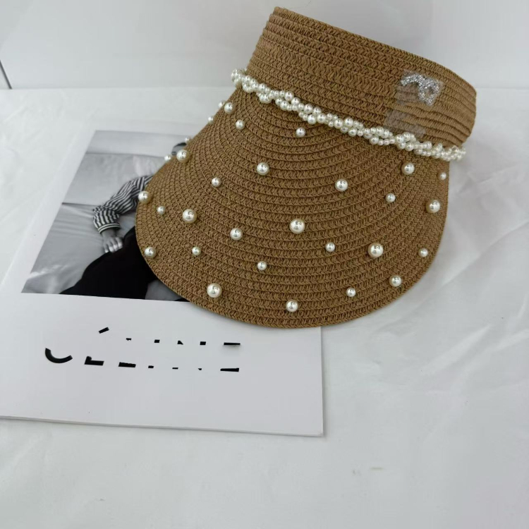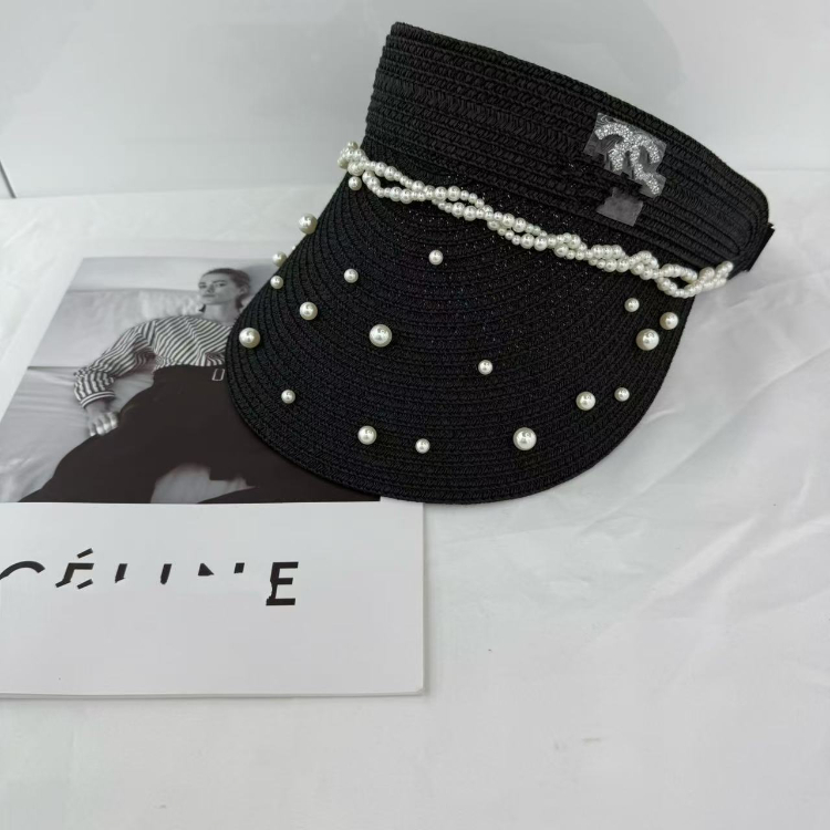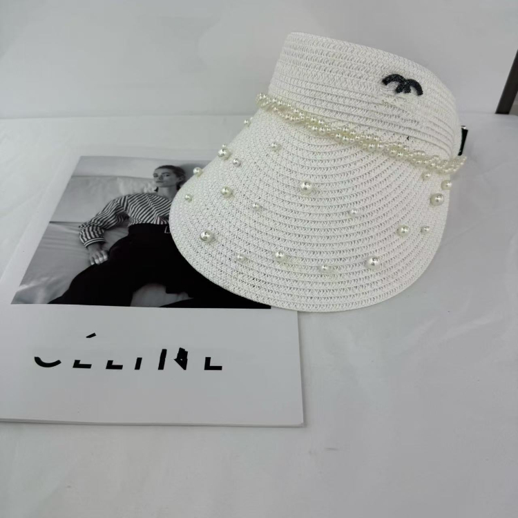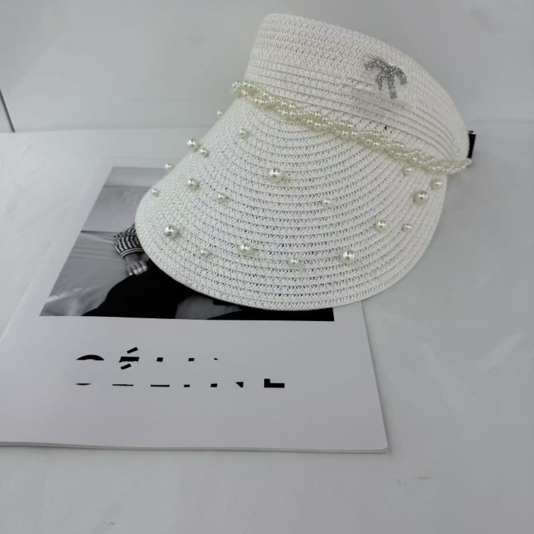 Chanel beaded straw visor hat-5979