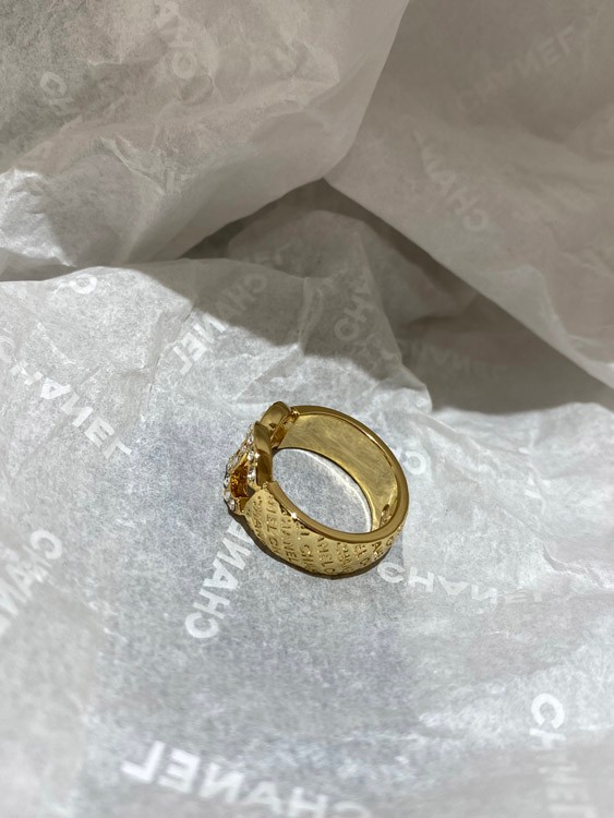 Home > Chanel gold letter embossed double C diamond double-sided wearable ring-3591