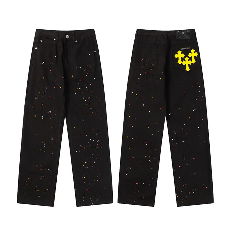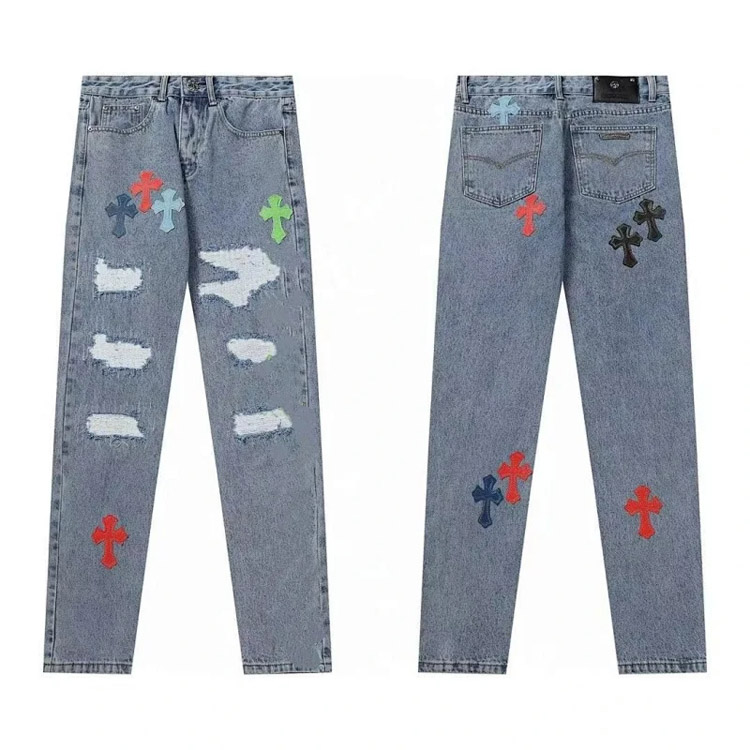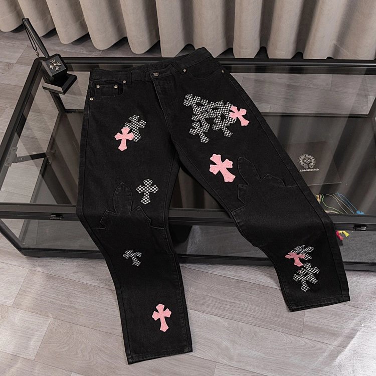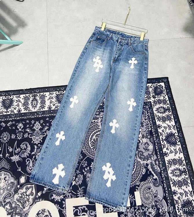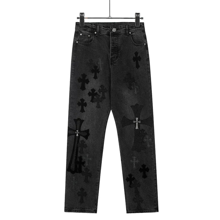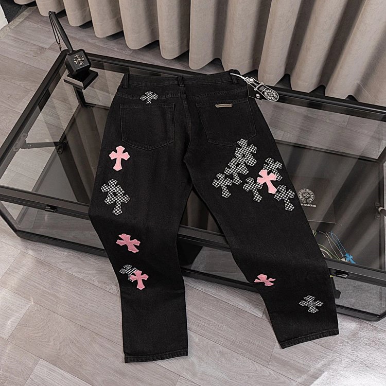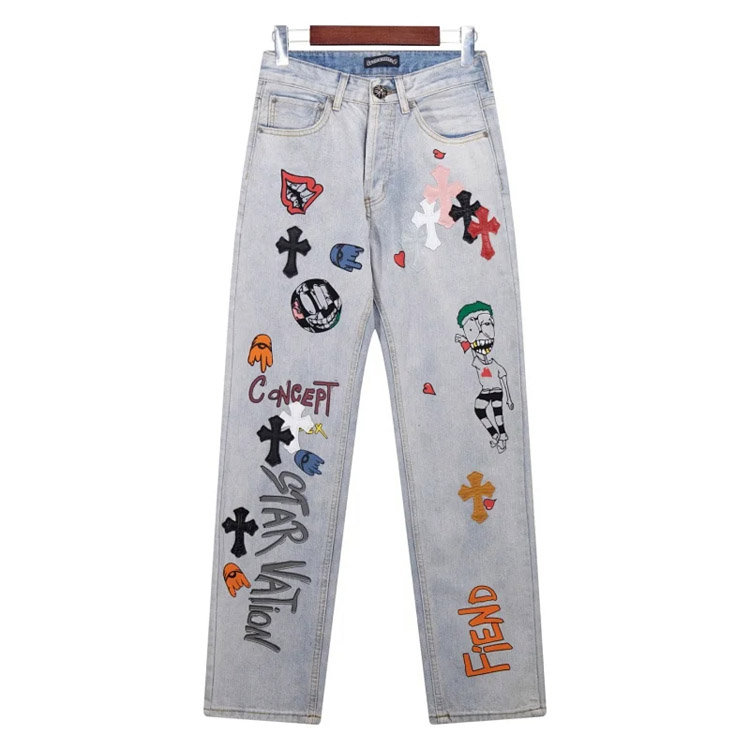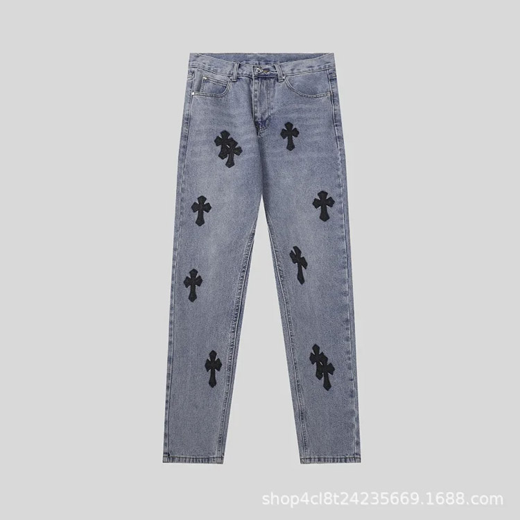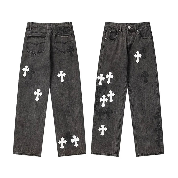 Chrome Hearts CH Appliqué Embroidered Washed Loose-fitting Jeans-4939