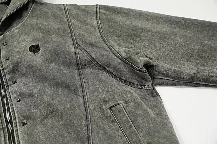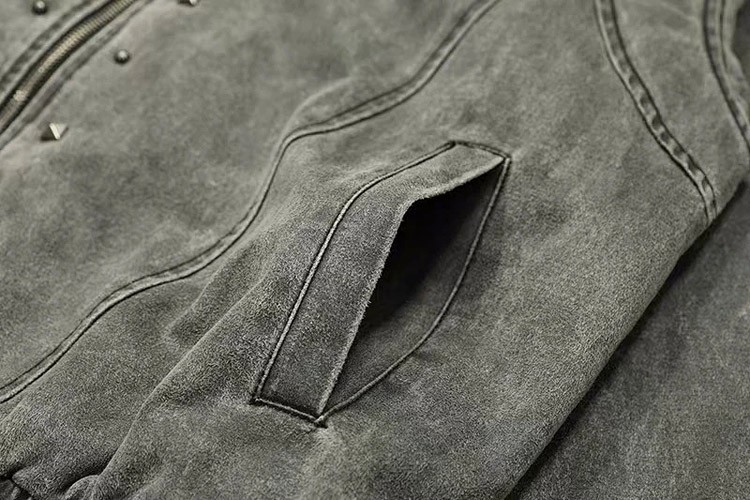 Darkage new washed and distressed hooded jacket with rivets-5013
