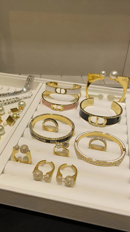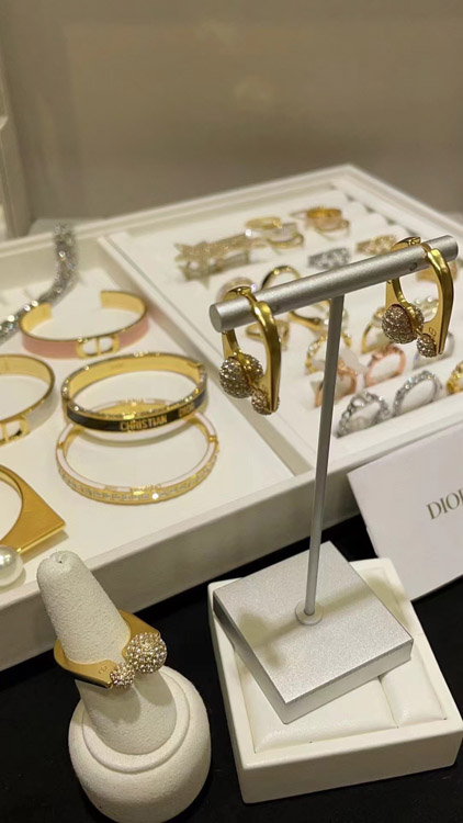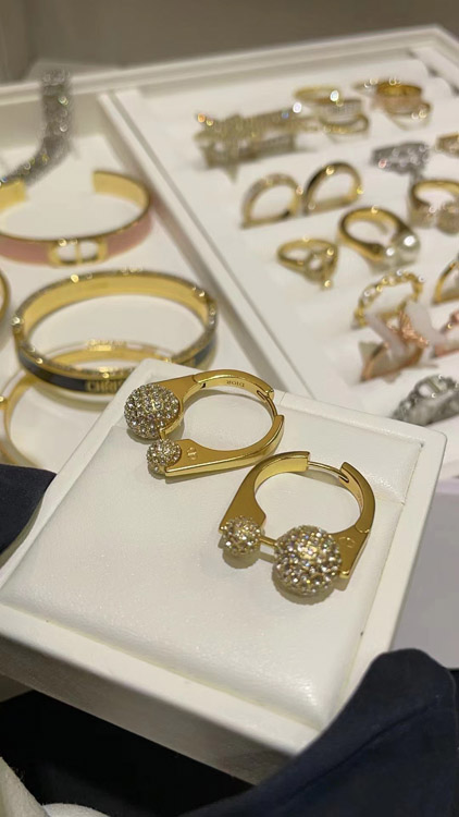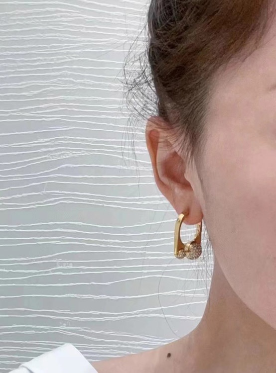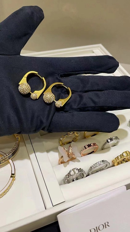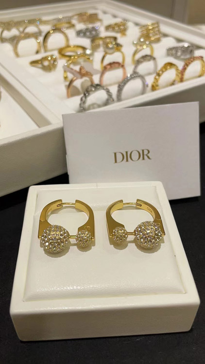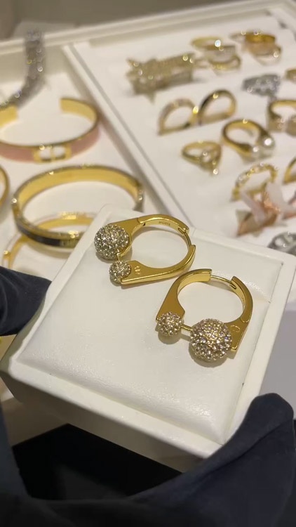 Dior French full diamond small golden ball gold earrings-3711