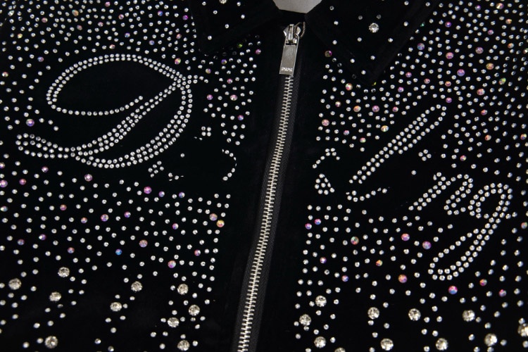 Dior new velvet baseball jacket with all-over hotfix rhinestone embellishments-5313