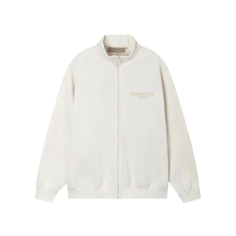 Essentials solid color letter print zipper long sleeve coat jacket-4366