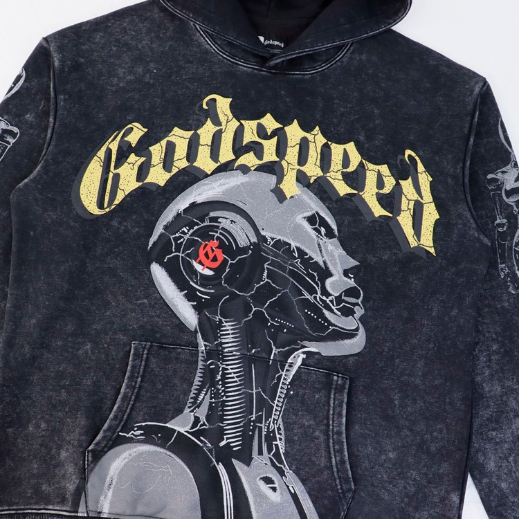 Godspeed Retro Washed Skull Print Loose-fitting Terry Hoodie-4561