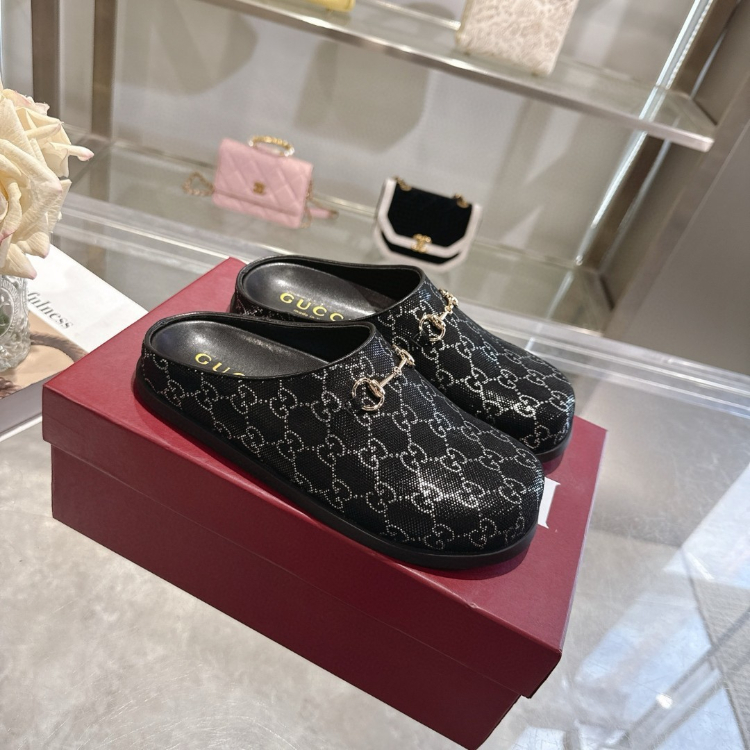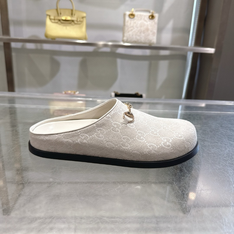 Gucci new round-toe horsebit buckle flat mules-5749