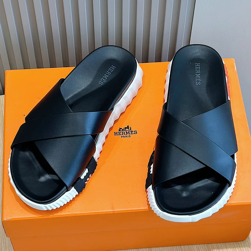 Hermes summer luxury leather flip flops Baita sandals-2334