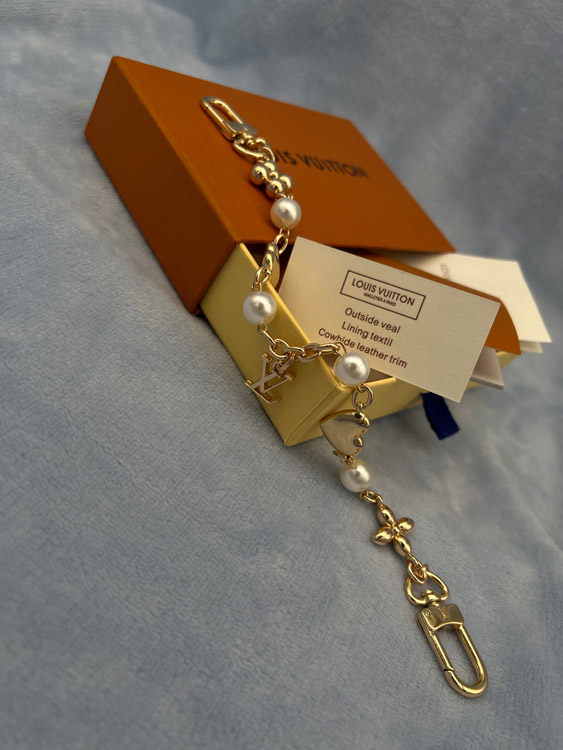 Home > Louis Vuitton LV black charm resin pearl heart-shaped flower pendant chain bag decoration pendant-3762