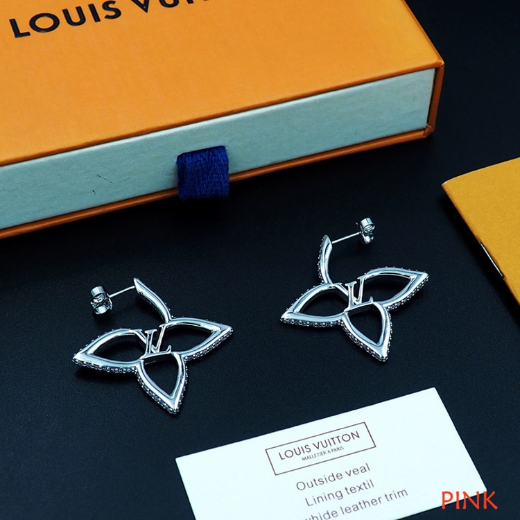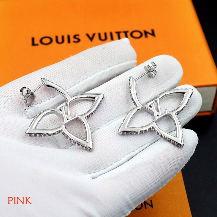 Louis Vuitton LV floral metal hollow outline diamond earrings-4064