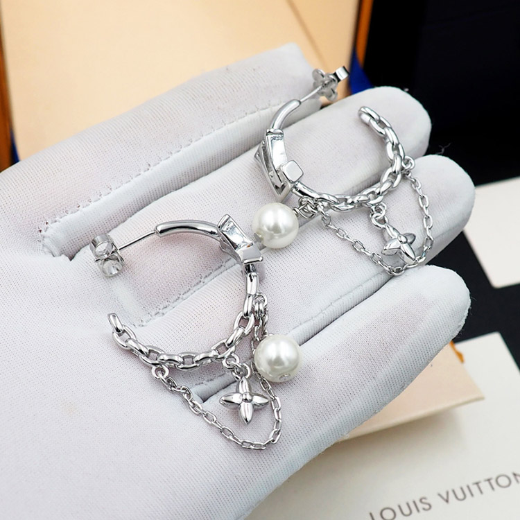 Louis Vuitton LV flower and letter pearl earrings-4060