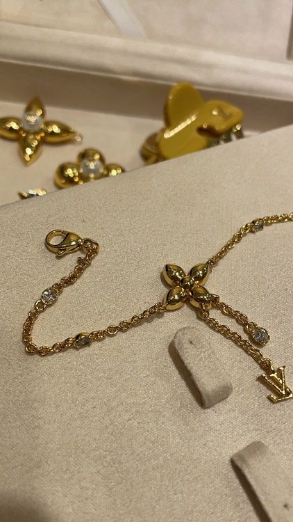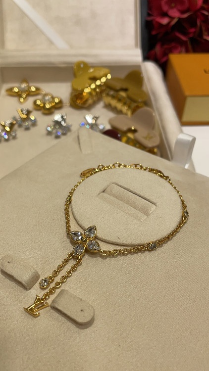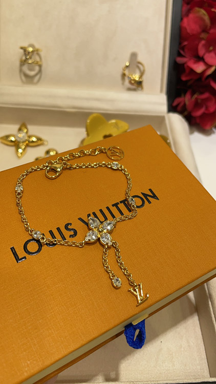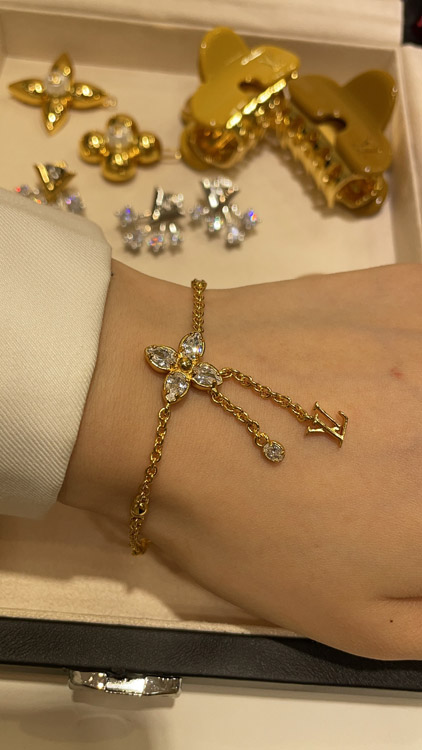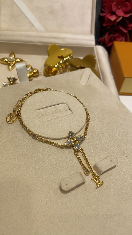 Louis Vuitton LV full diamond floral small chain tassel gold bracelet-3729