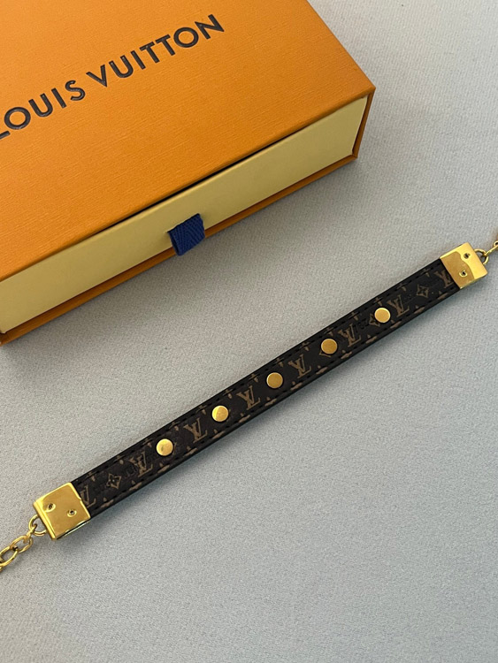 Louis Vuitton LV letter flower black leather gold rivet chain fine leather bracelet bracelet-3660