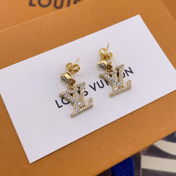 Louis Vuitton LV square diamond pendant full diamond letter earrings-3673