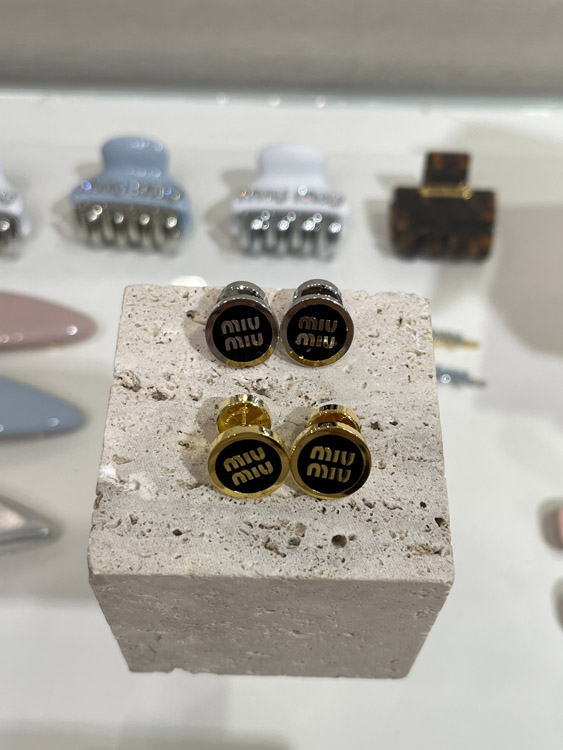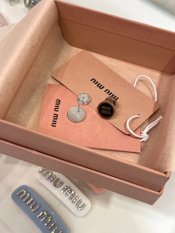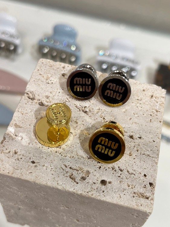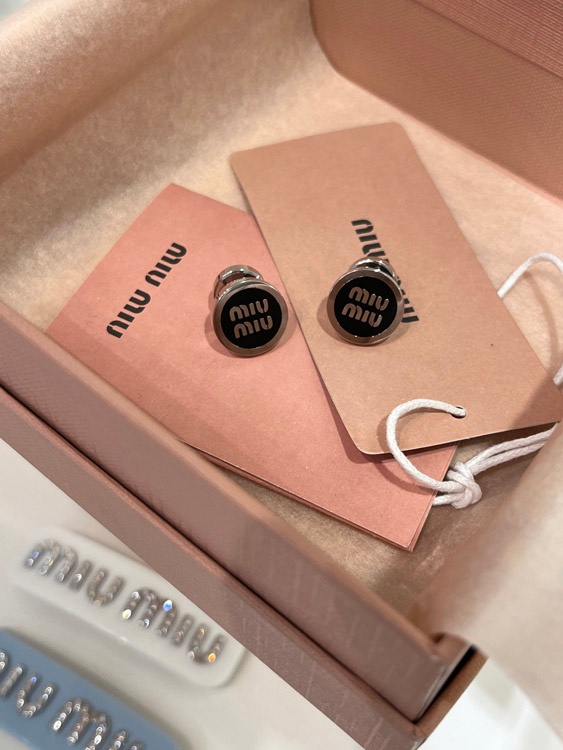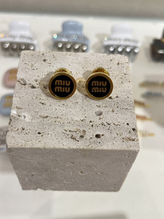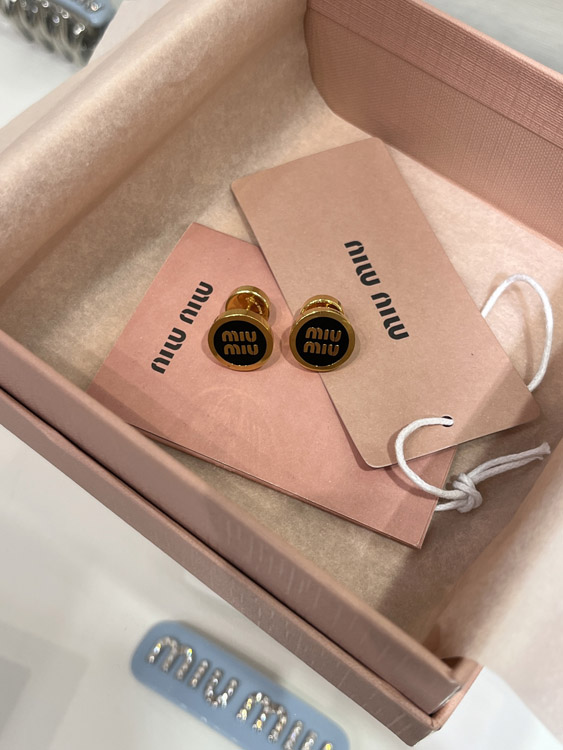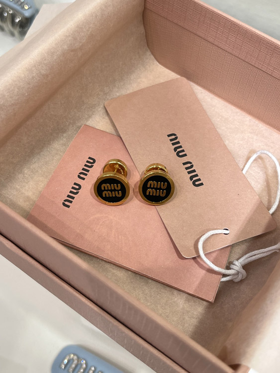 Home > MIUMIU black enamel letter metal round button earrings-3893