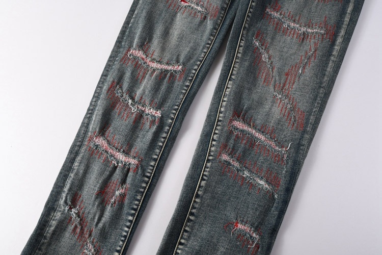 Purple Brand new embroidered slim-fit ripped print stretch jeans-4250