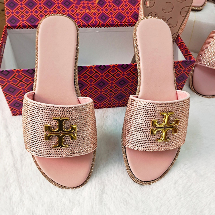 Tory Burch flat sandals with rhinestone embellishments-5647