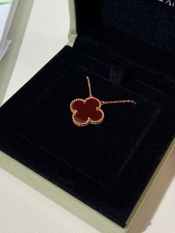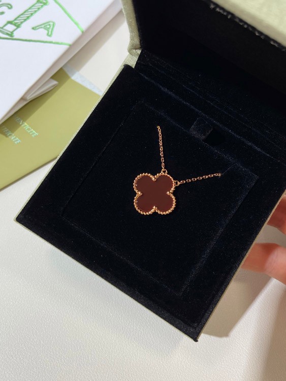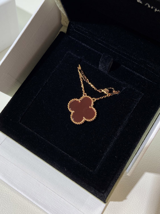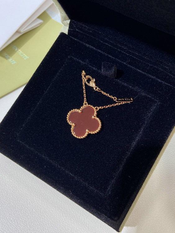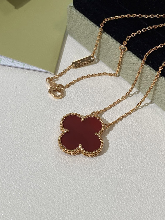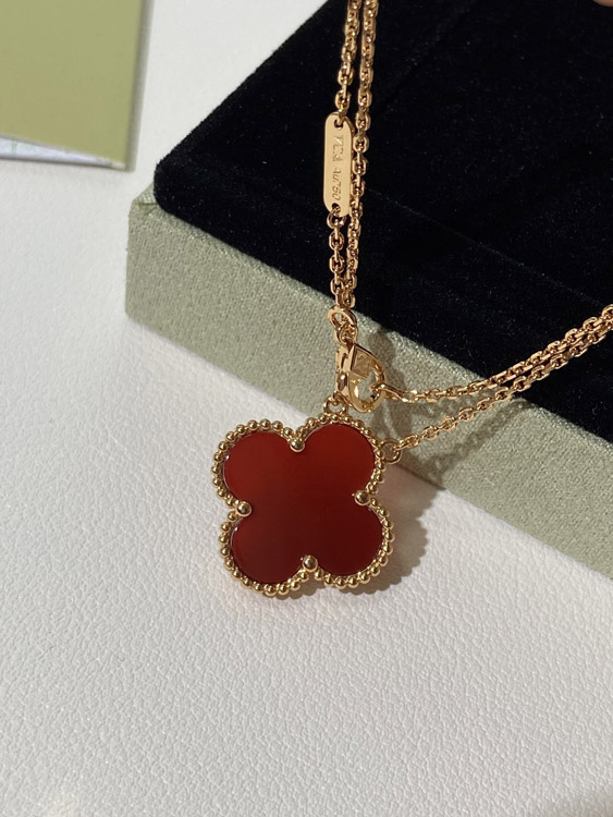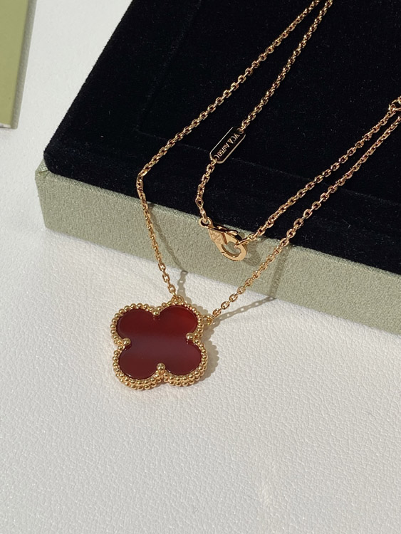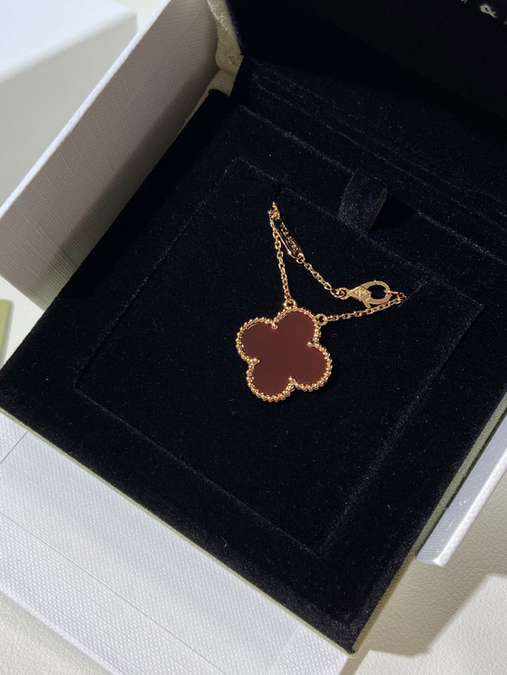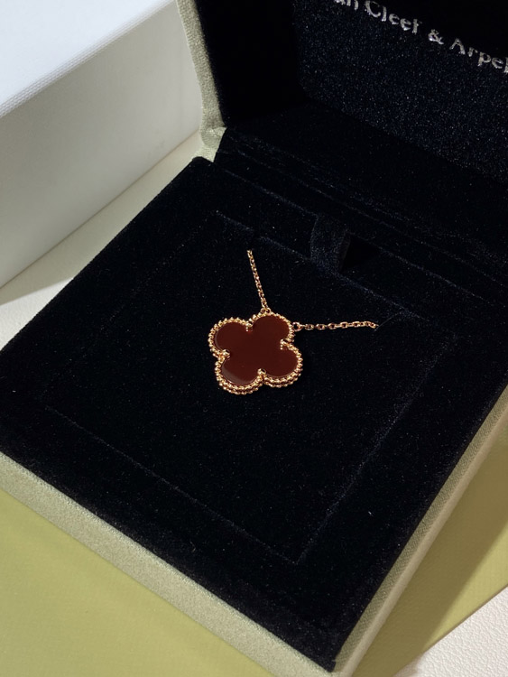 Home > Van Cleef & Arpels four-leaf clover gold red obsidian wide necklace-3790