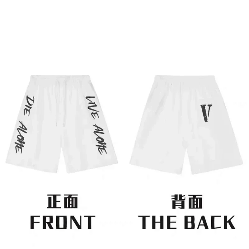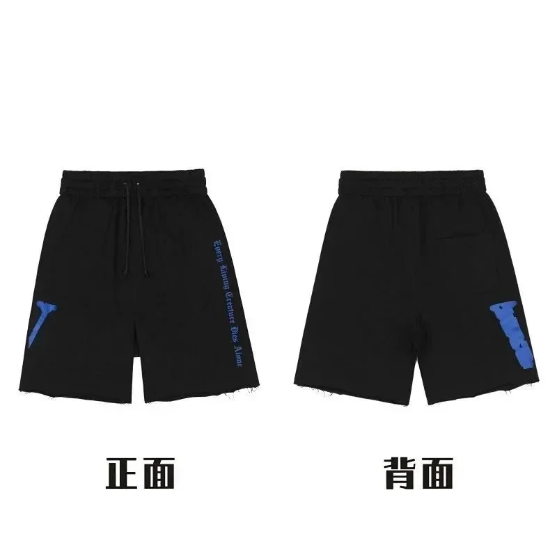 Veron Jerry Big V Letter Print Cotton Terry Casual Shorts-2490