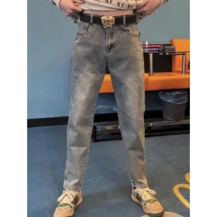 Versace new embroidered casual straight-leg versatile denim trousers-5868