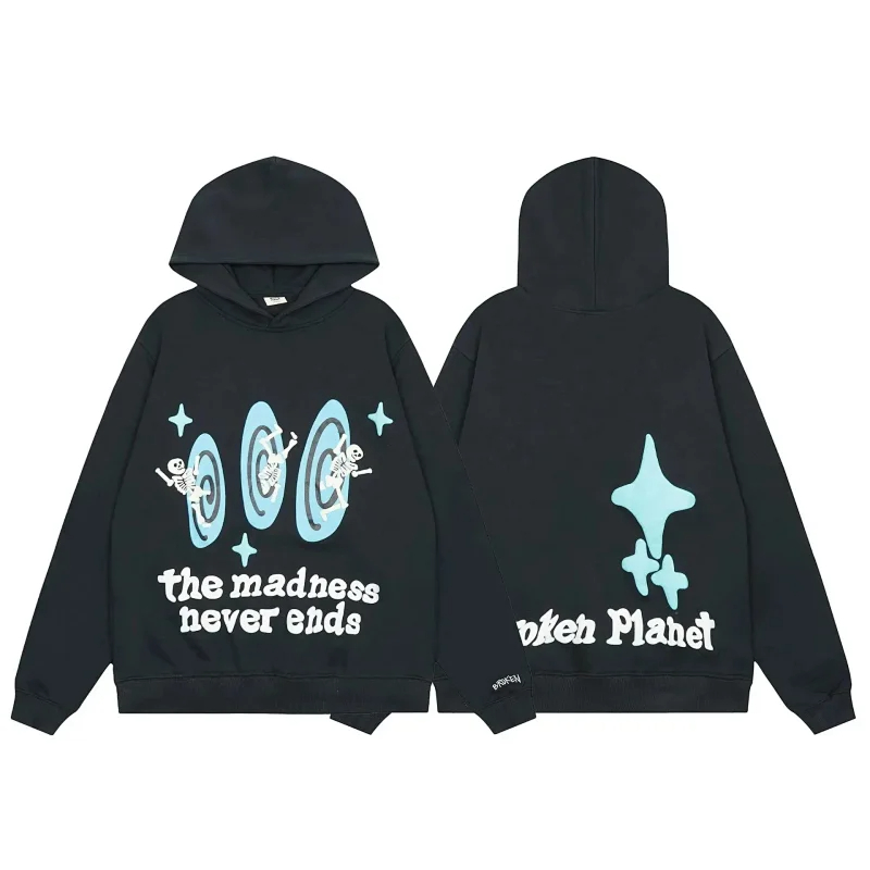 Broken Planet American style retro foam printing hooded sweatshirt-2506
