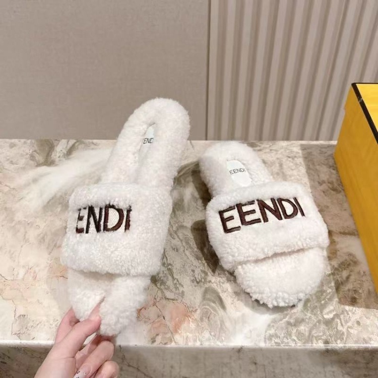 Fendi new design letter embroidered fur slippers-5689