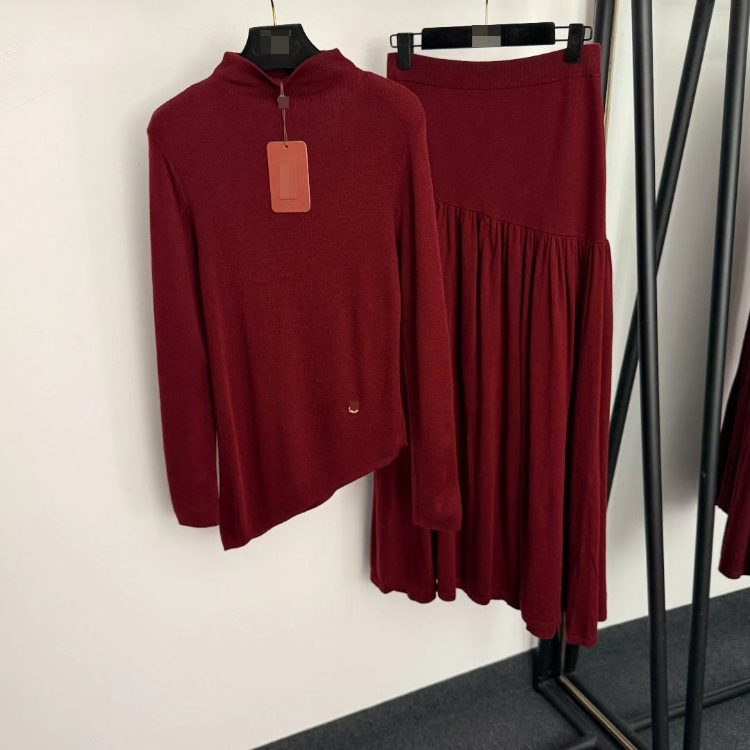 Loro Piana new wool knit set with irregular slanted hem-5384