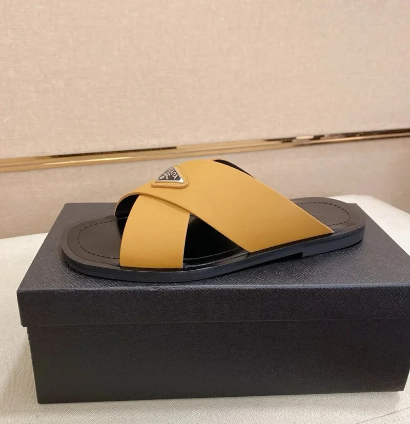 Prada Ultralight Breathable Leather Cross Slippers-5553