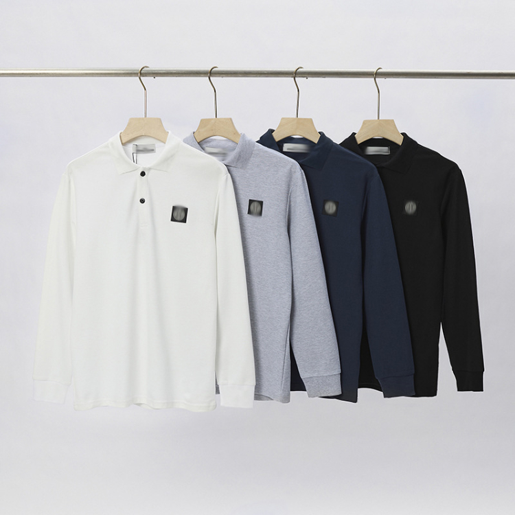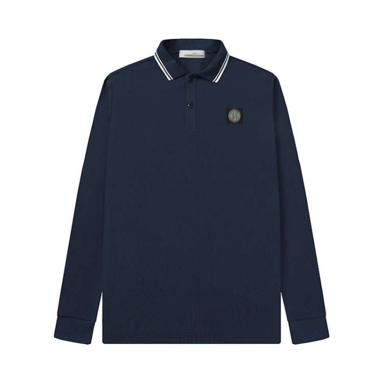 Stone Island Classic Logo Embroidered Long-Sleeve Polo Shirt-5254