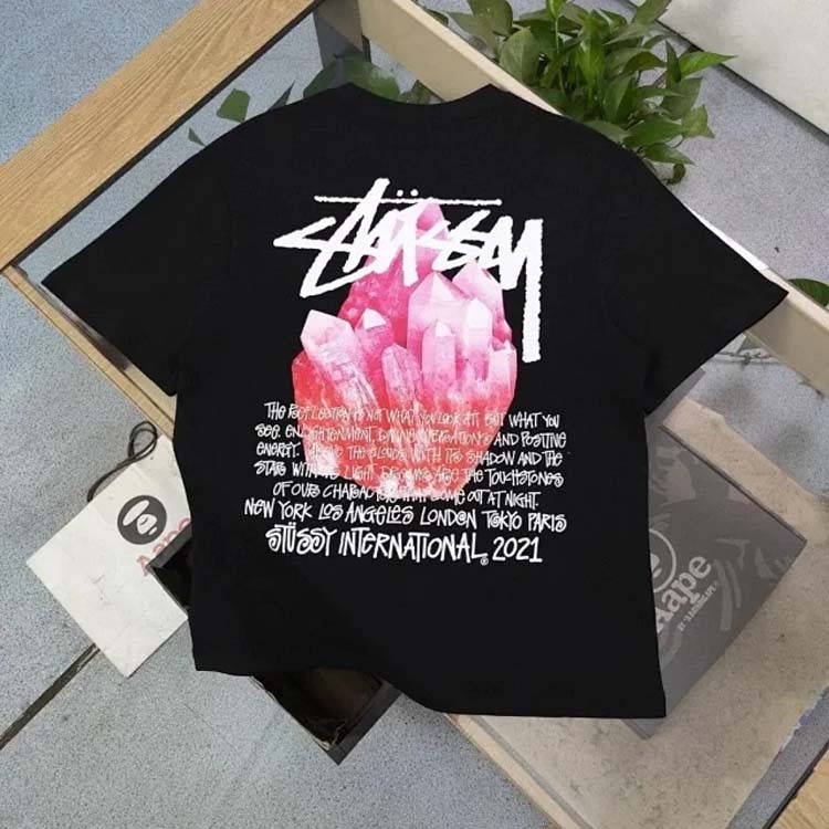 Home > STU pink crystal letter print round neck short sleeve T-shirt(39 styles)-1874